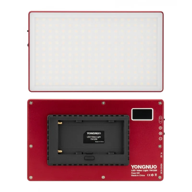 Yongnuo YN125 II - удобная светодиодная вспышка, которая придется по вкусу фотографам, режиссерам, влогерам и стримерам, которым нужен небольшой источник света, готовый работать в любых условиях. Вы можете питать ее от классического адаптера питания USB или подключить к пауэрбанку с помощью кабеля USB-C. Если вам нужна ультрамобильность, можно использовать аккумулятор NP-F, который легко подключается к специальному разъему. 228 светодиодов обеспечивают качественный свет с впечатляющей для размеров устройства мощностью, которую можно плавно регулировать, как и цветовую температуру (3200 K - 5600 K).
