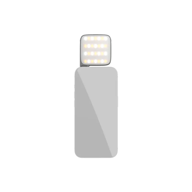 Flip design for two-way lighting. Whether used for capturing yourself or your surroundings, the amaran Gos intuitive flip design offers lighting flexibility whether creating content with the front or rear camera. Flip the amaran Go open when filming vlogs or taking selfies or collapse it for filming surroundings or other subjects. Pocket-sized power for creating on the go. The amaran Gos ultracompact and lightweight design sets it apart from larger alternatives, making it the perfect pocket-sized lighting solution for creating on the move. Slip the mini light into your pocket or purse without adding additional bulk even while still attached to your phone.
