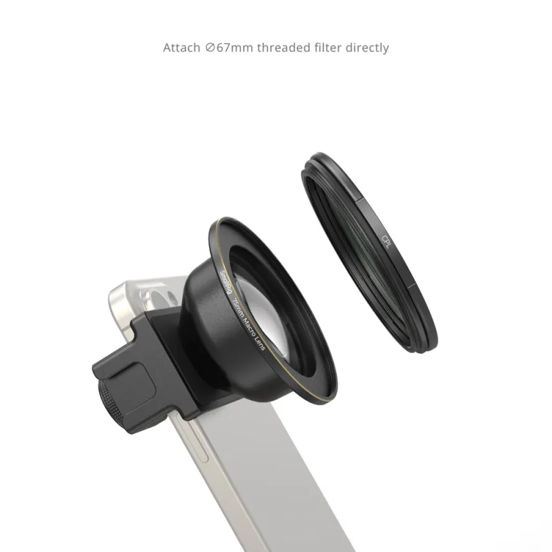 The SmallRig 4588 75mm Macro Lens for Mobile Phone (T mount) is designed to enhance your mobile photography by working seamlessly with your phones main camera to create stunning macro photos with enhanced color reproduction and image clarity that surpass standard lenses. Experience high-quality images with shallow depth of field and minimal distortion, comparable to professional DSLR results.