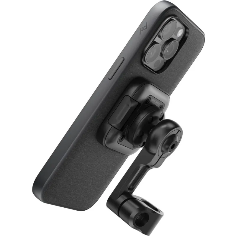 Features an ultra-strong magnetic/mechanical mounting technology (called SlimLink) that grabs, locks, and charges (optional) your phone so effortlessly, it feels like magic. Remove your phone instantly with the press of a buttoneven with riding gloves on. A rigid adjustment arm with fully articulating ballhead lets you customize your phone position for optimized viewing. Remove the arm for lower-profile mounting. Best-in-class vibration isolator prevents phone damage, yet preserves enough stiffness so you can easily interact with your phone while mounted. Weatherproof machined and anodized aluminum construction with stainless steel fasteners. Requires a Peak Design Case or Universal Adapter (sold separately).