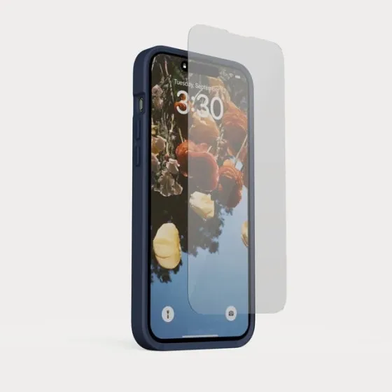 Made from ion strengthened glass you get solid protection from the gnarliest of falls in a super thin profile of just 0.3mm. The oleophobic coating reduces smudges and repels water and lets your finger glide smoothly to keep your screen looking fresh even after heavy use. Its also compatible with screen based features like Dynamic Island, Face ID, front flash, and front facing speakers.