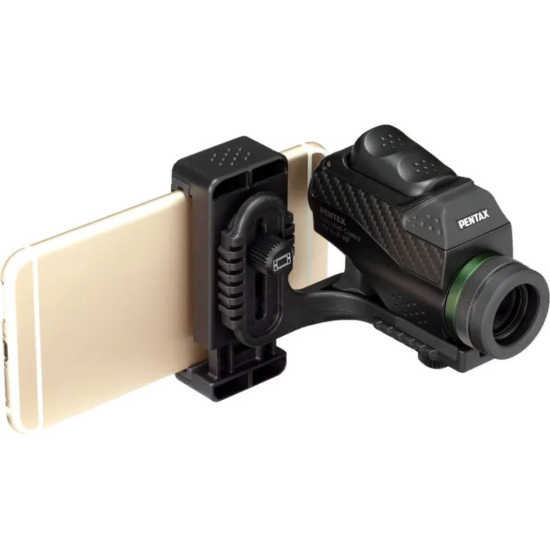 Pentax V-SA1 is a dedicated accessory for their 6x21 VM WP monocular. The adapter lets you capture photos and videos with your smartphone through the eyepiece. Use it for landscape and bird photography or use it together with the macro stand V-MS1 for stunning macro shots.