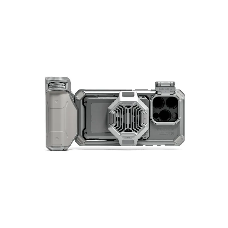 Tilta Khronos iPhone 15 Pro Advanced Kit in Titanium White создан для мобильного кинематографа и предлагает всесторонние аксессуары для улучшения качества съемки. Этот расширенный комплект включает в себя корпус Khronos iPhone 15 Pro, систему охлаждения, ручку фокусировки PD, быстросъемный лоток для фильтров, а также фильтры ND 0,6 и 1,2. Конструкция фиксирующего зажима обеспечивает надежное крепление и позволяет подключать аксессуары к электросети. Комплект также совместим с MagSafe и Bluetooth, обеспечивая универсальные возможности многофункциональной зарядки 5/10 Вт.