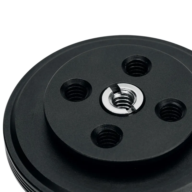 The magnetic mount features four 1/4 20 and one 3/8 16 socket holes on the back, allowing you to attach the device/ tripod with a 1/4 20 or 3/8 16 screw. In addition, the magnetic mount uses an Arca Type quick release plate design and allows you to slide it directly onto an Arca Type ball head.,
