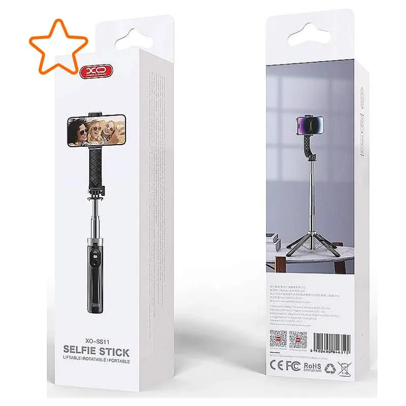 XO SS11 - это компактный мини-штатив для смартфона, который также можно использовать в качестве ручного штатива. Легко регулируется как по вертикали, так и по горизонтали. Совместим со всеми смартфонами. Кнопка shutter на телефоне активируется с помощью кнопки на пульте дистанционного управления через Bluetooth-соединение. Пульт дистанционного управления работает на расстоянии до 10 м. Два в одном - штатив и ручной штатив Можно использовать в горизонтальном и вертикальном положении Встроенный адаптер для смартфона & пульт дистанционного управления Универсальный - подходит для любого телефона Минимальный размер в разложенном виде: 17,5 см Максимальный размер в разложенном виде: 100 см Подходит для устройств 4,7-7"