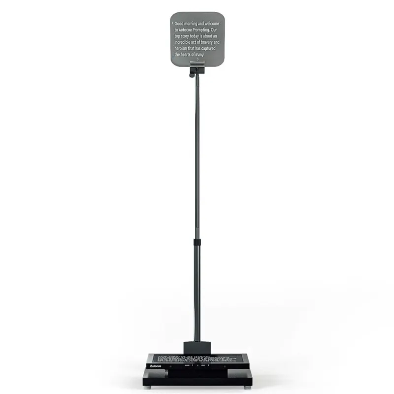 The monitors have a metal housing that’s lightweight and tough enough to survive for the long-haul. Simply rest them on the base of the conference stands and use the included splitter to run an HDMI cable to each one. The conference stand poles can be adjusted to place the glass at the perfect height to make the script visible to the speaker and you can be confident it will remain unseen by the audience thanks to Autocue 70:30 beamsplitter glass.