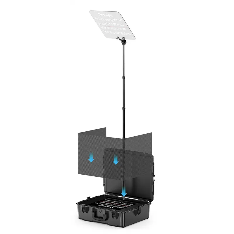 Desview TP300 - это профессиональный телепромптер, разработанный дл публичных выступлений и живых записей. Его прозрачна стеклнна панель позволет ведущим поддерживать зрительный контакт с аудиторией, чита свои тексты. Устройство готово к использованию всего за 60 секунд и оснащено 19-дюймовым монитором с ркостью 1000 нит дл отличной видимости.
