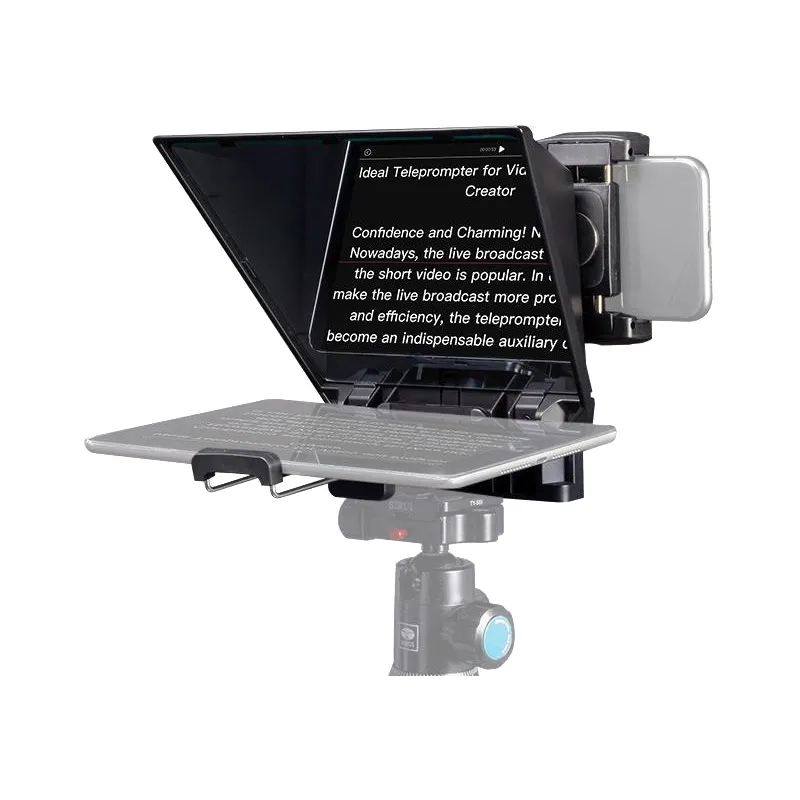 The TP2A teleprompter uses environmentally ABS industrial plastic material, which is sturdy and durable. The compact and portable design, easy to carry, suitable for quickly using in various occasions.