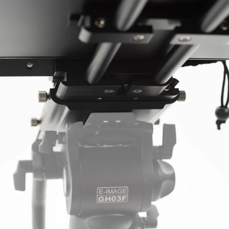 The teleprompter base has a sliding plate that allows you balance on your tripod without the hassle of having remove the whole teleprompter to find the ideal balance.