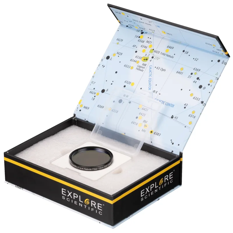 The EXPLORE SCIENTIFIC H-Alpha Nebula filter has been developed exclusively for astrophotography. Especially in slightly light-polluted skies many emission nebulae only become visible and are shown in full expanse on astrophotos when using this filter. The H-Alpha nebula filters make astrophotography near the city possible and the use leads to amazingly good image results despite the existing light pollution. A must for every urban astrophotographer.