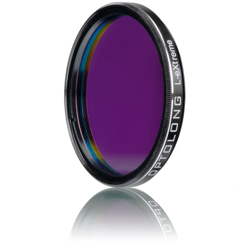 L-eXtreme is a two 7nm narrow bandpass filter which can be used with one-shot color cameras like DSLRs (digital SLR), color CMOS and monochrome CCD cameras. The convenience and cost-effectiveness of this filter allows amateurs to photograph rich emission nebulas, even in bright, heavily light-polluted skies. The L-eXtreme filter is the better choice for fast optical systems at a competitive price. It isolates the H-Alpha and Oxygen III nebula emission lines so that the contrast and signal-to-noise ratio between nebulae are maximized. The design of our L-eNhance filter is a technical innovation among filters. For people who live in heavily light polluted areas or when the moon is out, the L-eXtreme is a very good choice.