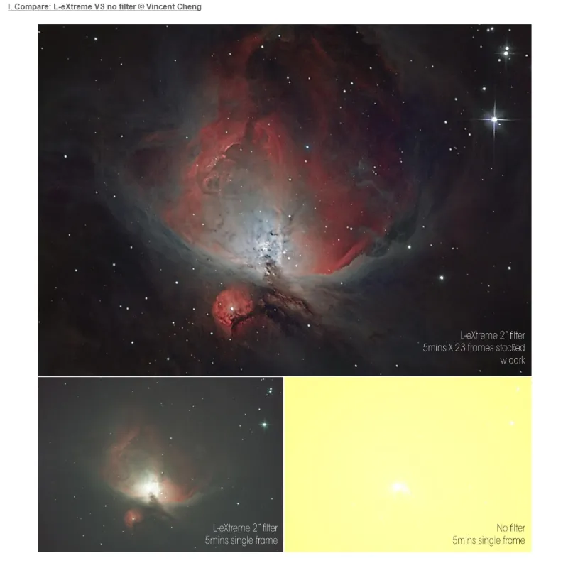 The relentless spread or urbanization and its associated light pollution have become a growing problem for all amateur astro photographers. The current solutions to the problem can be expensive and might include the purchase of a monochrome camera, several types of narrowband filters and a filter wheel. Especially with inexpensive but fast newtonian telescopes, double-lens ED refractors or even achromats, the L-eXtreme filters open up completely new possibilities for high-class astronomical images even from the light polluted city. CMOS cameras can deliver images like monochrome cameras. This new generation of filters makes it possible to take amazing astrophotos directly from the heavily light-polluted city with all its artificial light sources. The dual narrow bandpass for the wavelengths of O-III and H-Alpha and the almost complete attenuation of the interfering light sources of these new filters make this an ideal solution.