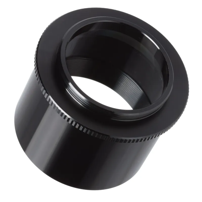Enables you to connect a camera to telescopes that accept 2" barrel eyepieces. You will need a T2-ring for your special camera type also. The very special feature of this adaptor is the very short mechanical design (2.0mm) which enables the camera use also on telescopes with a short focal range. This adapter is also prepared to use with 2" filters.