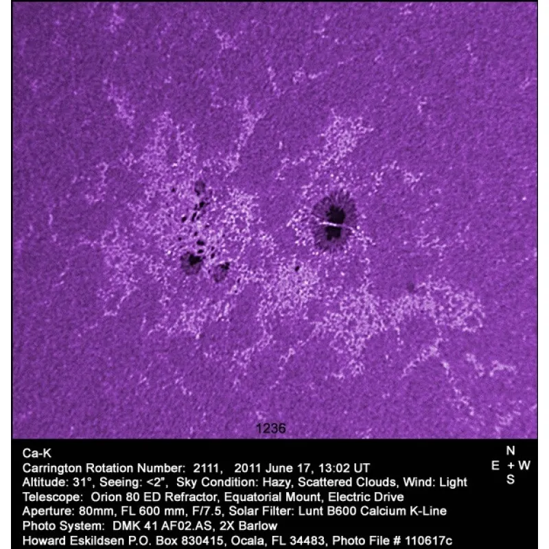 The Ca-K wavelength is at the edge of the visible light spectrum for human eyes, so for many people visual observing is difficult. However, all details could be captured photographically. Therefore the Ca-K Module is optimized primarily for imaging.