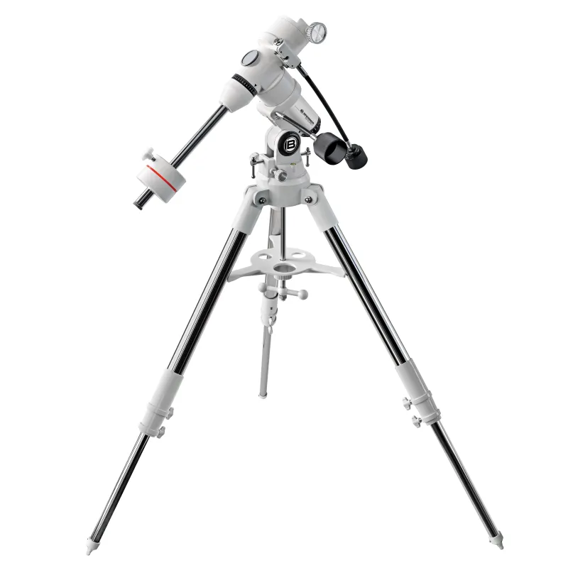Mount and Tripod . The BRESSER Messier beginners series of telescopes. Within this series you find smaller optics mounted stable on the new BRESSER EXOS 1 mount. This combination means more value for money and puts an end to flimsy beginners scopes which discourage most of the beginners due to small, under engineered mounts. The EXOS 1 with a robust stainless steel tripod bears optical tubes weighing up to 7kg stable for visual observation. The optional motor drive for the RA axis makes usage even more comfortable, so there is no need of manual tracking and the object is kept steadily in the field of view.