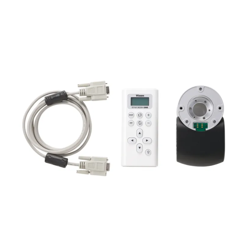 The AP-SM mount is an enhancement of the AP mount. Unlike the AP mount, it has an RA motor and is equipped with the STARBOOK ONE controller.