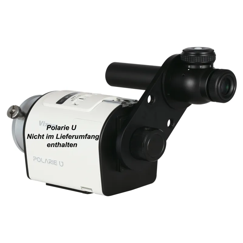 You need this Vixen polar finder set for the POLARIE U Star Tracker in order to be able to align the POLARIE U exactly to the celestial pole. This is very important for longer focal lengths and exposure times, in order to obtain point-like star images. The polar finder enables polar alignment with an accuracy of 3 arc minutes . The polar alignment is very simple: You only have to bring the Pole Star and two other stars into the field of view of the polar finder and rotate them with the stars so that they are congruent with the reticule shown in the polar finder . No further calculation is needed - no time and date to set, just match the reticule to the polar stars and get imaging. The polar finder PF-L II has red, dimmable lighting that switches itself off after a few minutes in order to save the batteries.