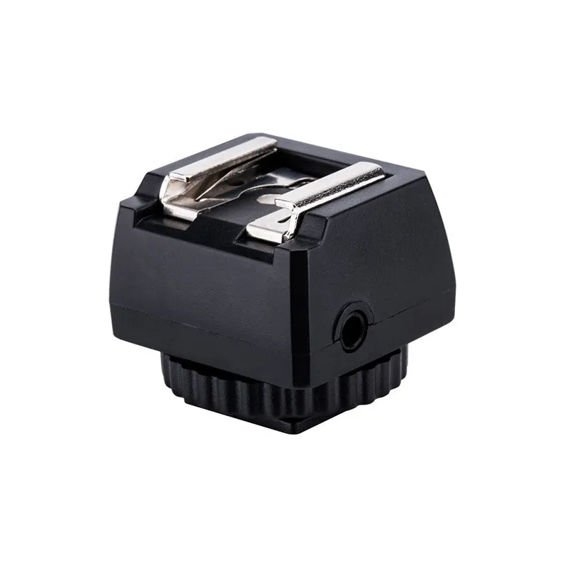 The JJC JSC-9 adapter is ideal for use with external speedlite units. The JSC-9 has a standard hotshoe on top and a coldshoe base with a female 1/4"-20 tripod connector on the bottom. This allows you to easily mount a flash unit on a tripod with this adapter. Also included are a PC-female and a 3.5mm jack for fitting additional accessories.