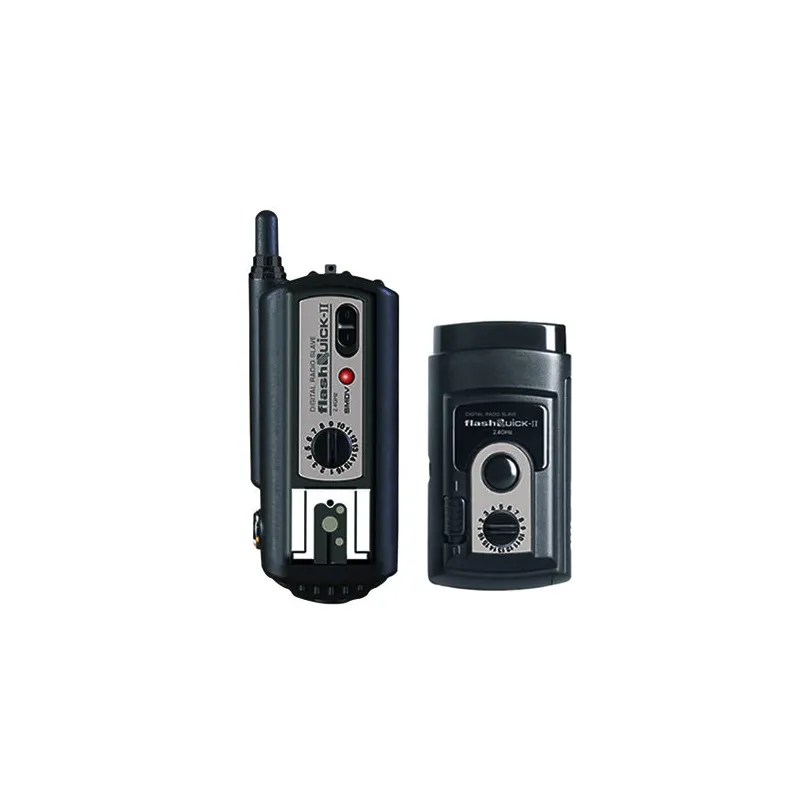 The SMDV Flash Quick-II is a 16-channel trigger set that allows you to trigger a flash head from a distance of 150 metres. The set works with radio waves in the 2.4GHz frequency band. You work with a sync speed of up to 1/250s.