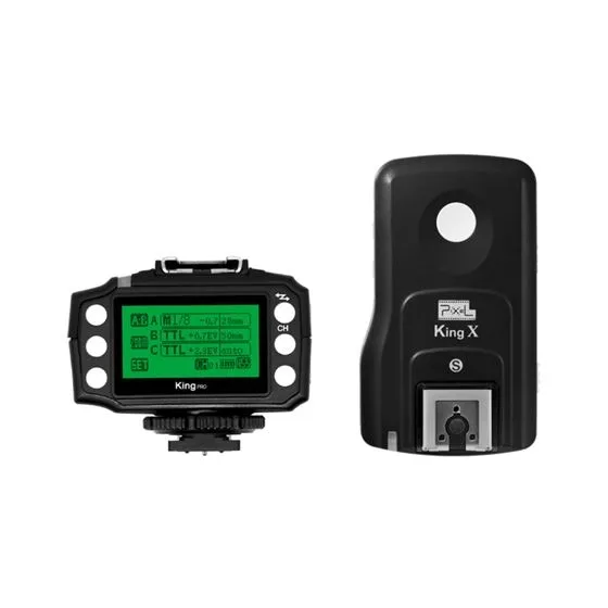 The Pixel i-TTL King Pro Radio Trigger Set is an advanced trigger set for speedlites compatible with Sony Mi. The i-TTL King Pro Trigger Set supports both, manual and automatic TTL communication with the camera and has a range of 300 meters. With the use of additional receivers, multiple speedlites can be used and divided into groups. The lighting values for each of these groups can also be set individually. Further, with the i-TTL radio trigger set, EV corrections, sync-mode (1st/2nd curtain, highspeed sync etc.), zoom settings and flash bracketing mode, can be set via the camera menu.