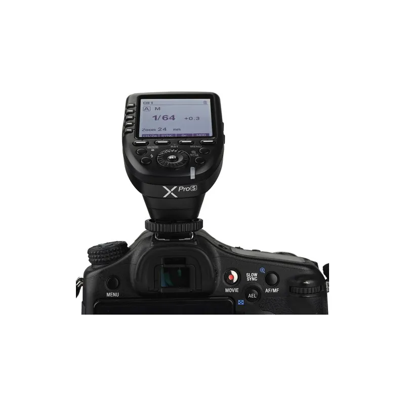 Using the 2.4 GHz Godox X wireless radio system, the XProS TTL Wireless Flash Trigger can be used to effectively and reliably trigger flashes from up to 328' away, and when used with compatible flashes and receivers users will have the added benefit of remote power control. This model is compatible with Sony's ADI / P-TTL system, including support for high-speed sync up to 1/8000 second, and offers advanced control options along with settings for working with system-specific features. For ensuring maximum reliability and control, users can set up 16 groups on one of 32 channels and can then access 99 wireless ID settings for limiting interference from other nearby systems.