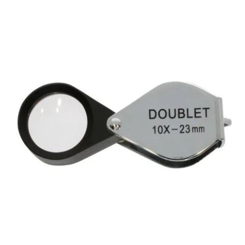This doublet can simply be slid over your index finger. With the doublet you can study the finest essential details of the material you want to observe. The casing is very sturdy, made of metal. Small and easy to take with you.