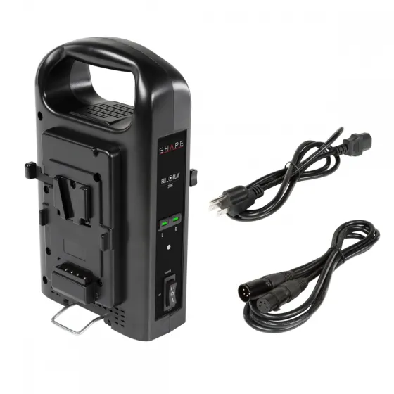 Новое быстрое зарядное устройство SHAPE Intelligent Dual V-Mount для литий-ионных батарей идеально подходит для батарей SHAPE FULL PLAY. Оно обеспечивает одновременную зарядку до двух батарей и может использоваться как источник переменного тока, обеспечивающий выходную мощность 4A.