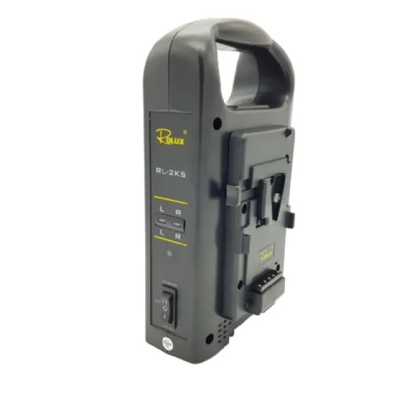 Rolux Dual Battery Charger RL-2KS - это профессиональное зарядное устройство, предназначенное для зарядки аккумуляторов V-Mount. Оно позволяет одновременно заряжать два аккумулятора и включает сетевой кабель и 4-пиновый XLR-кабель, обеспечивающий прямое питание для любой видеокамеры с 4-пиновым XLR-разъемом.