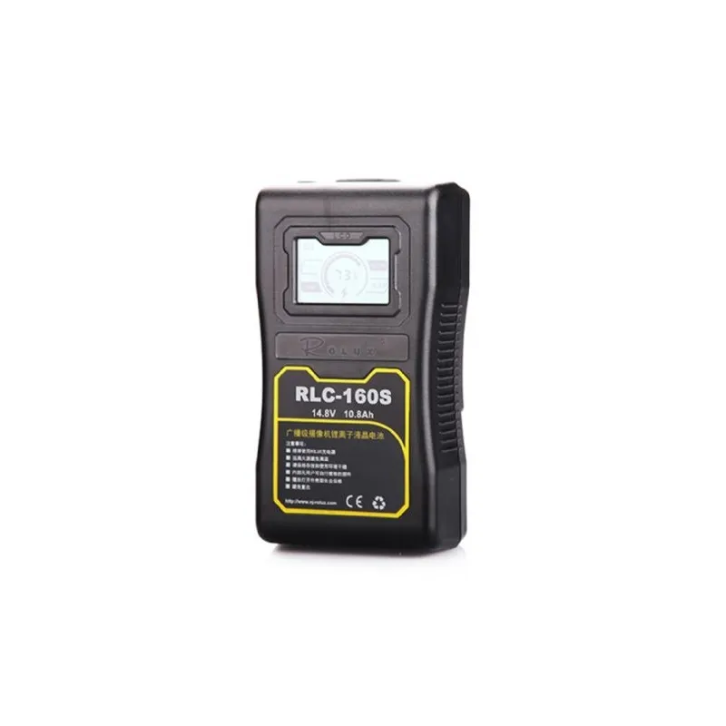 ;3The Rolux V-Mount Battery RLC-160S is a professional Lithium Ion battery with a capacity of 10.8Ah and 160Wh with LCD display. The battery status is displayed on the LCD display. The Battery is has a no memory function, which means that you can charge the battery at any time even if the battery isn t completely empty. That way it won t have any effect on the performance of the battery. Charging the battery will take approximately 2.5 hours with the Rolux 2KS. Battery Charger is not included, but can be found in the optional accessories tab below.
