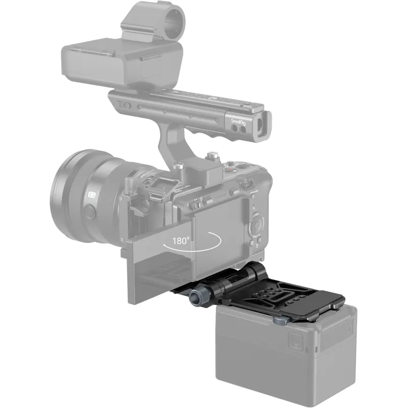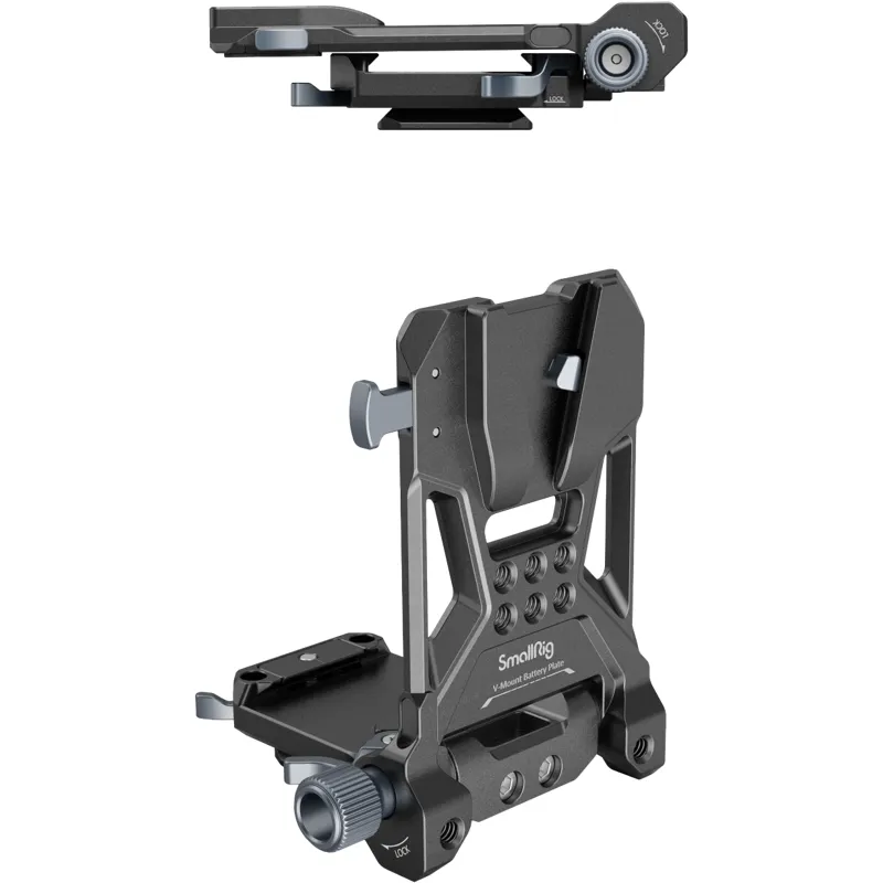 SmallRig Compact V-Mount Battery Mounting System 4064 represents a compact, lightweight, convenient, all-in-one mounting solution for V-mount battery. The kit consists of a V-mount battery plate, an Arca-type quick-release plate, and a V-mount plate. Particularly, the baseplate can be stretched to fit mirrorless / DSLR cameras of various sizes, which is helped by tool-less installation and adjustment, quick and time-saving. Beyond any cage with a built-in Arca-type plate, it can directly support the camera and DJI RS series gimbals via the Arca Swiss quick-release plate. The V-mount battery plate, featuring 1/4"-20 threaded holes and a V-mount plate, provides more power supply solutions by attaching NP-F Battery Adapter Plate Professional Edition 3168 or Holder for Portable Power Banks BUB2336. Switching between handheld shot and tripod shot is also easier, thanks to the bottom Arca-type plate. The 90-degree rotatable V-mount battery plate leaves enough room for flip screen, with pivot dampening preventing your device from falling. It can be folded down for increased compactness and portability.