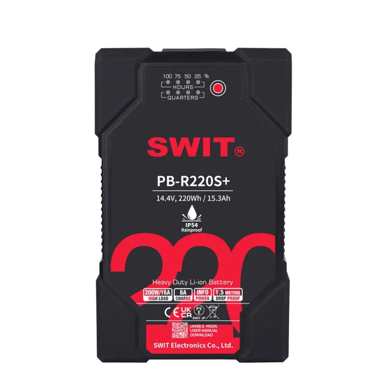 The Swit PB-R220S+ is a high-capacity V-mount battery that is ideal for long-term operation or for lights with high power consumption.
