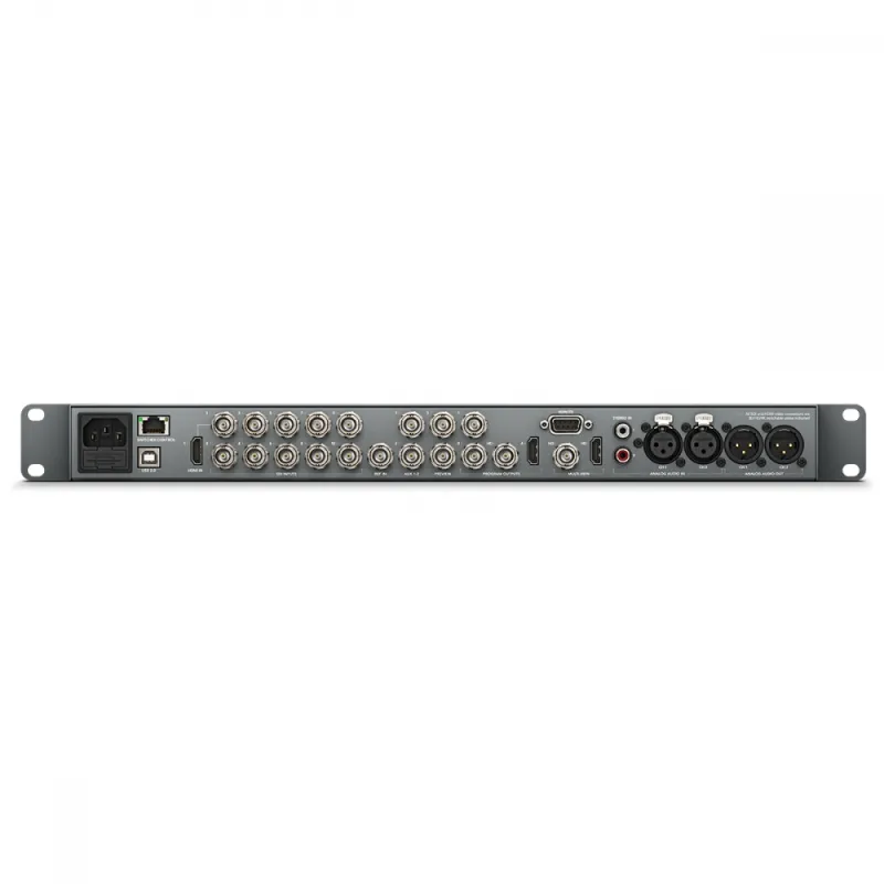 ATEM Production Studio includes advanced 6G-SDI and HDMI 4K inputs that are SD, HD or Ultra HD switchable so you can connect to virtually anything! Every input supports embedded audio mixing and features a frame resynchronizer so you can use sources without genlock such as consumer HDMI cameras or even computers for live PowerPoint presentations! You also get 2 balanced XLR audio inputs for connecting professional mixers and a HiFi audio input for consumer equipment like an iPod®.