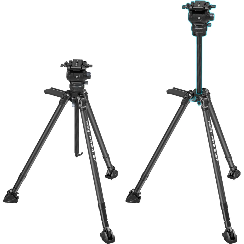 The SmallRig 4259 x Potato Jet Tribex Hydraulic Carbon Fiber Tripod Kit is designed for professional videography outdoors, with fast and easy operation. With hydraulic X Clutch technology, all legs can quickly unfold, adjust the angle and lock automatically in just one second, giving photographers a seamless experience. The clutch can also be adjusted to 45 and 90 for different shooting scenarios. Both the legs and the centre column are made of carbon fibre, providing a lightweight design with exceptional stability and high carrying capacity.