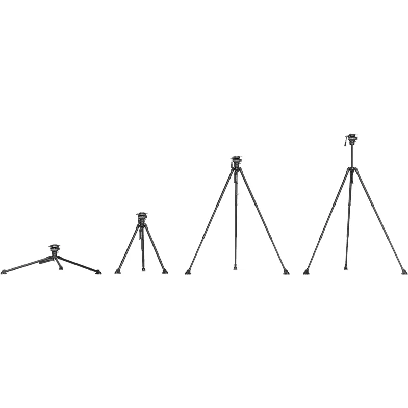 The user friendly detachable telescopic handle allows easy operation of the head when attached to the left or right side, making it compatible with any grip. The fluid head also has three 1/4 20 screw holes for attaching accessories such as magic arms, along with a built in flathead screw for easy camera installation and removal. The tripod also includes rubber feet with quick release and integrated spikes for seamless adjustment to different terrains.,