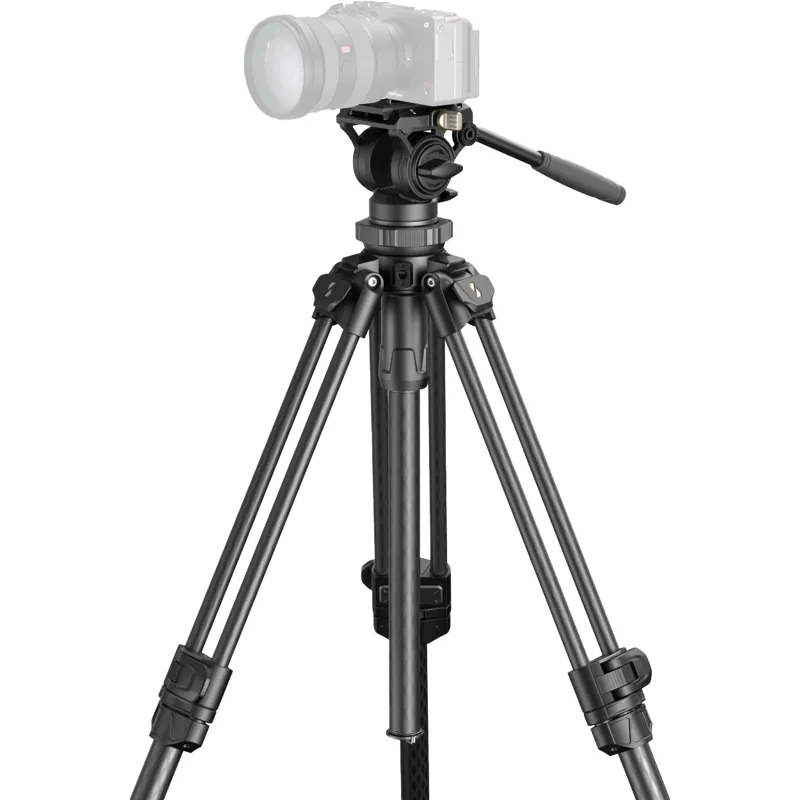 The kit includes a compact fluid head, featuring a damping system that allows you to pan the camera smoothly. When its center of gravity height is set at 50 mm, the panning and pre-set fixed counterbalance system can help precisely control the camera or other rigs weighing up to 4 kg for great counterbalance. The video head can carry as much as 6 kg.