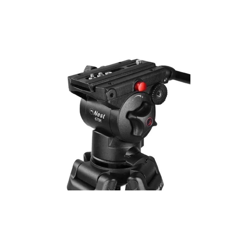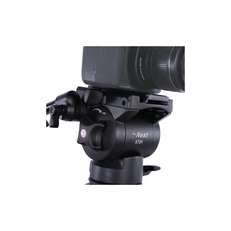 The Nest NT-670 is a professional video tripod with a fluid-damped head, suitable for video cameras and DSLR cameras. It is a very solid tripod and can therefore carry cameras with accessories up to 20 kilograms.
