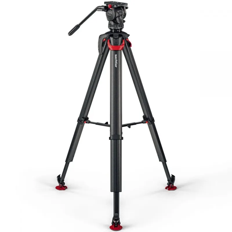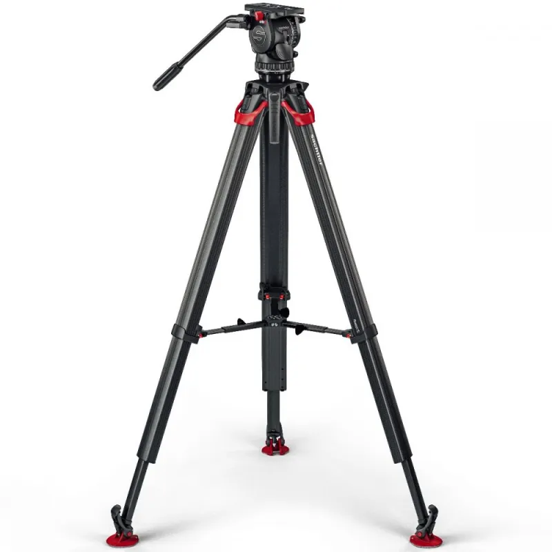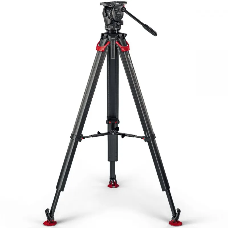 The Sachtler Flowtech 75 MS Carbon Fiber Tripod with Mid-Level Spreader and Rubber Feet eschews the common single or double carbon fiber tube design and instead has redesigned the shape of the legs for improved torsional strength. The legs work weigh just under 3 kilograms yet they can support a payload of up to 20 kilograms, and extend from a minimum height of 24" to a maximum height of 61" when using the included removable mid-level spreader. Each leg features a single clamping lever that locks and unlocks the sections.