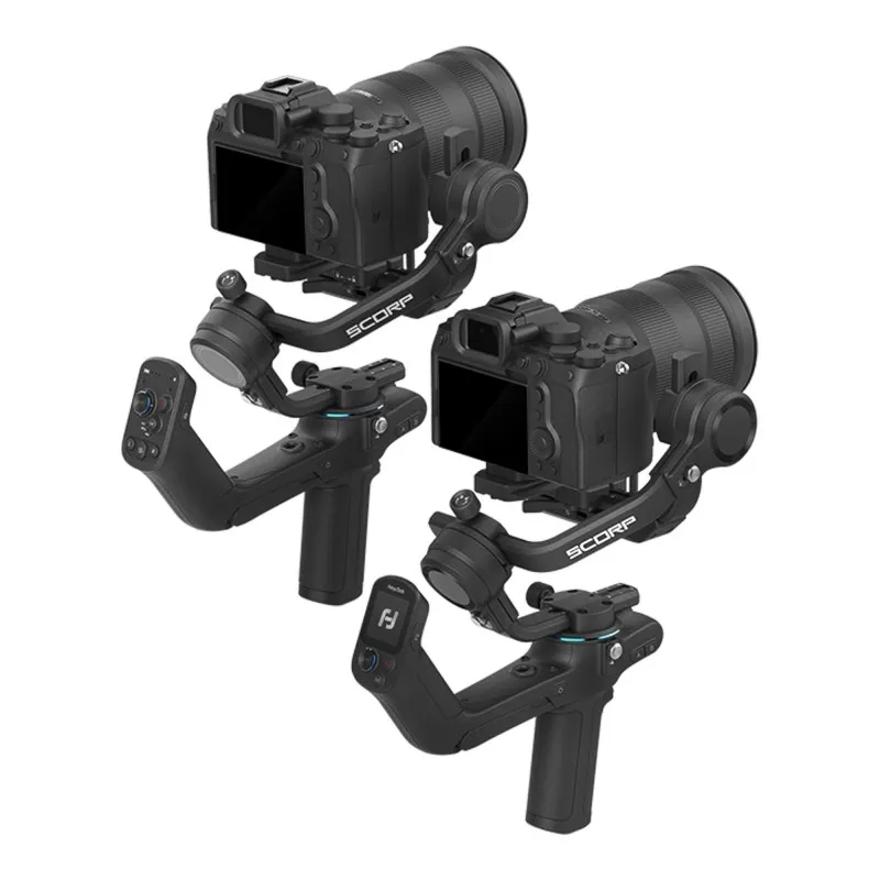 The FeiyuTech Scorp-C is a state-of-the-art gimbal designed for DSLR and mirrorless cameras with a maximum weight of 2.5 kg. Two handles allow comfortable and stable guidance of the camera in different positions.