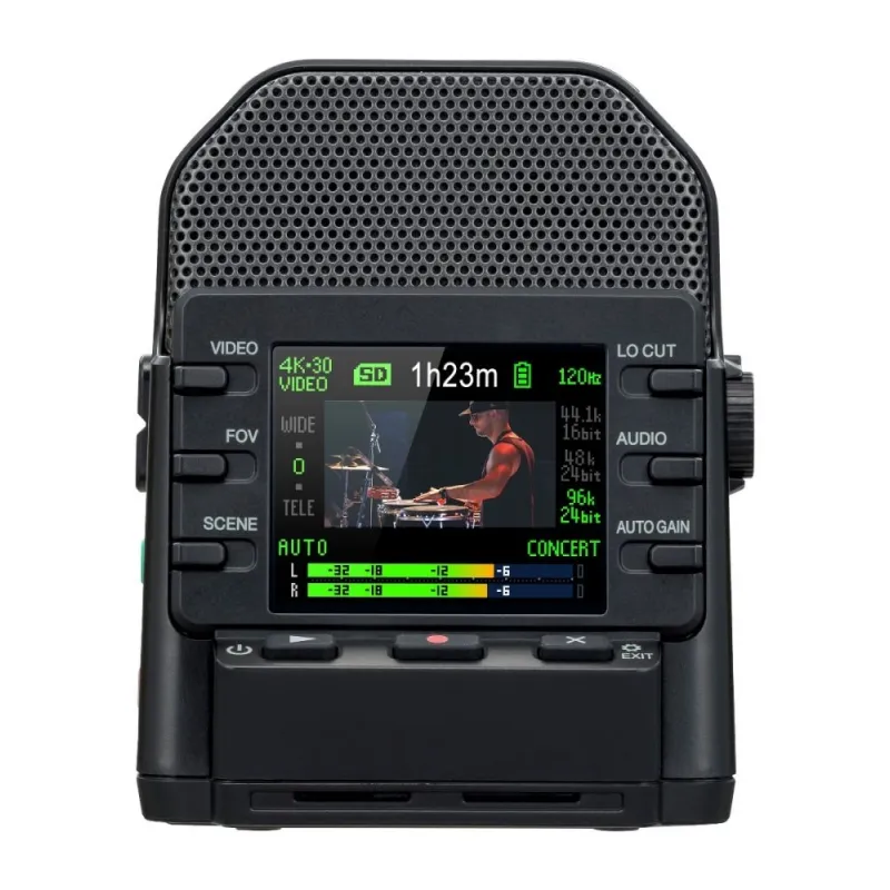 Designed for musicians, the Zoom Q2n-4K Handy Video Recorder pairs high-resolution UHD 4K video capture with up to 24-bit/96 kHz audio recording. Five FOV (field-of-view) settings and one-button recording enable you to easily capture yourself and/or your bandmates, whether for disseminating to your social media accounts or for reviewing a rehearsal or performance.