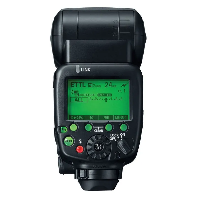 To accommodate any number of shooting styles, the Speedlite 600EX II-RT has 15 custom functions for incredible flexibility. Options include flash exposure compensation, flash exposure bracketing controls, modeling flash, AF assist control, power and energy saving features, beep and much, much more. Personal functions, like LCD panel illumination color and Master/Slave configurations, are also easily set on the Speedlite 600EX II-RT.