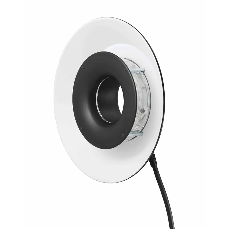 Designed for R1200, The RFT-21 Reflector can spread the light out, illuminate a larger area than the ring flash head itself and soften the shadows. Godox offers two dedicated reflectors (white and silver coating). The silver reflector is very reflective and brings more contrast compared with white one wich provides exra softness