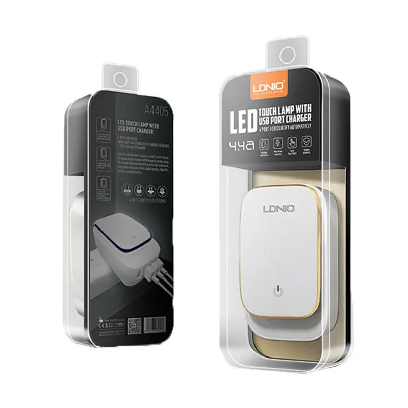 LDNIO A4405 - практичное сетевое зарядное устройство, которое также может работать в качестве ночника. Оно оснащено 4 портами USB и обеспечивает выходной ток до 4,4 А. Кроме того, устройство позволяет выбирать между ярким и приглушенным светом. Устройство изготовлено из высококачественных материалов и обеспечивает безопасность использования. В комплект также входит кабель USB-C.