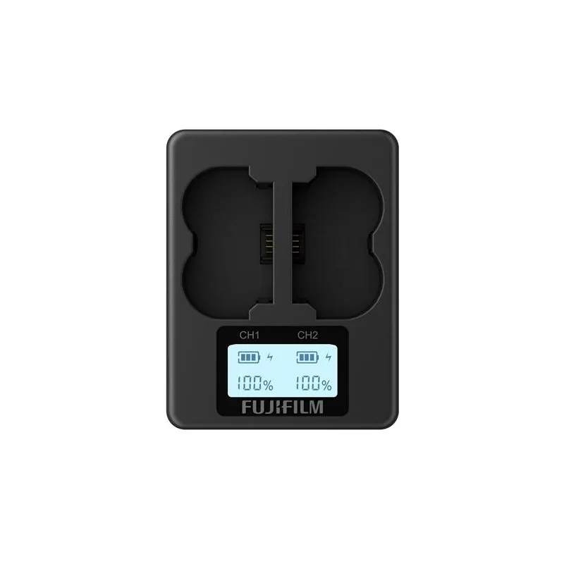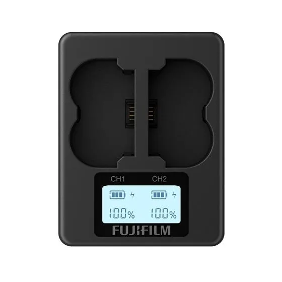 Up your charging efficiency with this FUJIFILM BC-W235 Dual Battery Charger, which is capable of charging two NP-W235 batteries at once. An integrated backlit screen also displays the charging status for both batteries.
