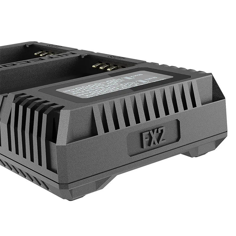 The Nitecore FX2 Pro Charger is specially designed for Fujifilm NP-TW125 batteries. The FX2 Pro battery charger has a maximum output current of 800mA in QC mode when charging one battery and a maximum of 600mA when simultaneously charging two batteries. In standard mode, the maximum output current is 500mA when charging one battery.