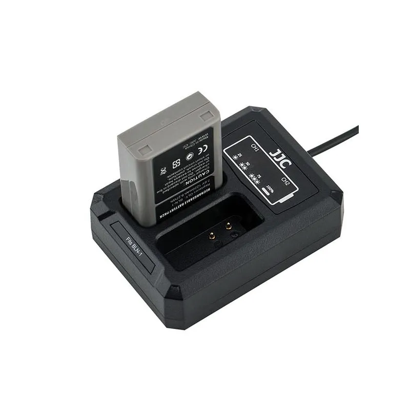 The JJC DCH-BLN1 Dual battery charger has room to two Olympus To charge batteries at the same time. With the help of the USB port you have the option to charge your batteries via mains, your laptop, power bank or car charger. This way you always and everywhere you charge your batteries. Suitable for the Olympus BLN-1 battery.