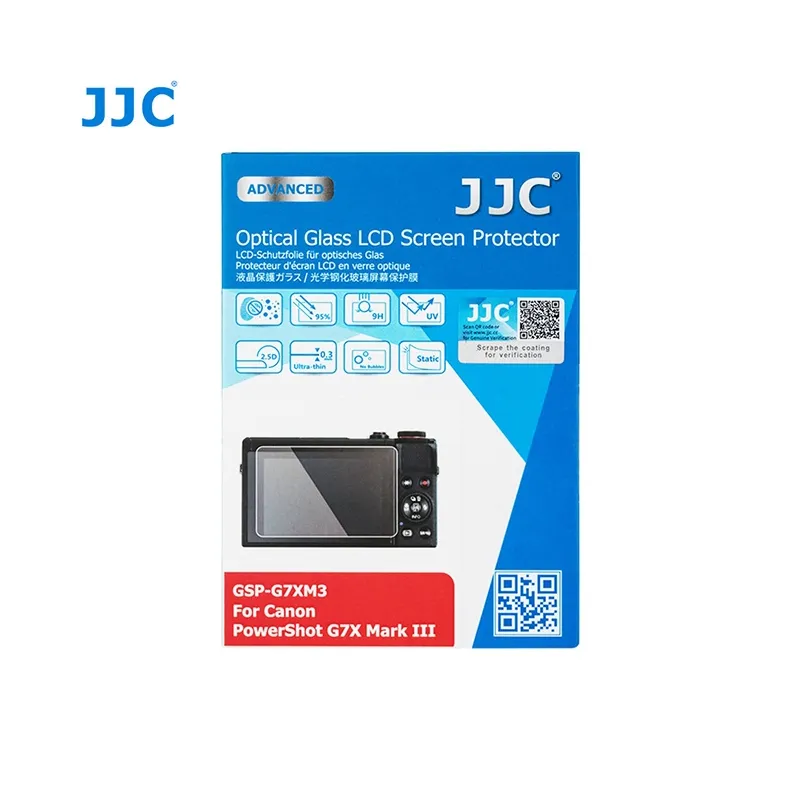 JJC GSP-G7XM3 Optical Glass Protector JJC GSP-G7XM3 Optical Glass Protector - это ультратонкий слой оптического стекла толщиной всего 0,3 миллиметра для защиты ЖК-дисплея вашего Canon PowerShot G7 X Mark III. Благодаря светопропусканию 95%, вы сохраните хорошую видимость информации и изображений на экране.Оптимальная защита Многослойное стекло-протектор защищает дисплей от грязи, царапин, пота, жира и даже обесцвечивания, вызванного длительным воздействием света. Стекло блокирует входящее ультрафиолетовое излучение, пропуская при этом видимый спектр света.