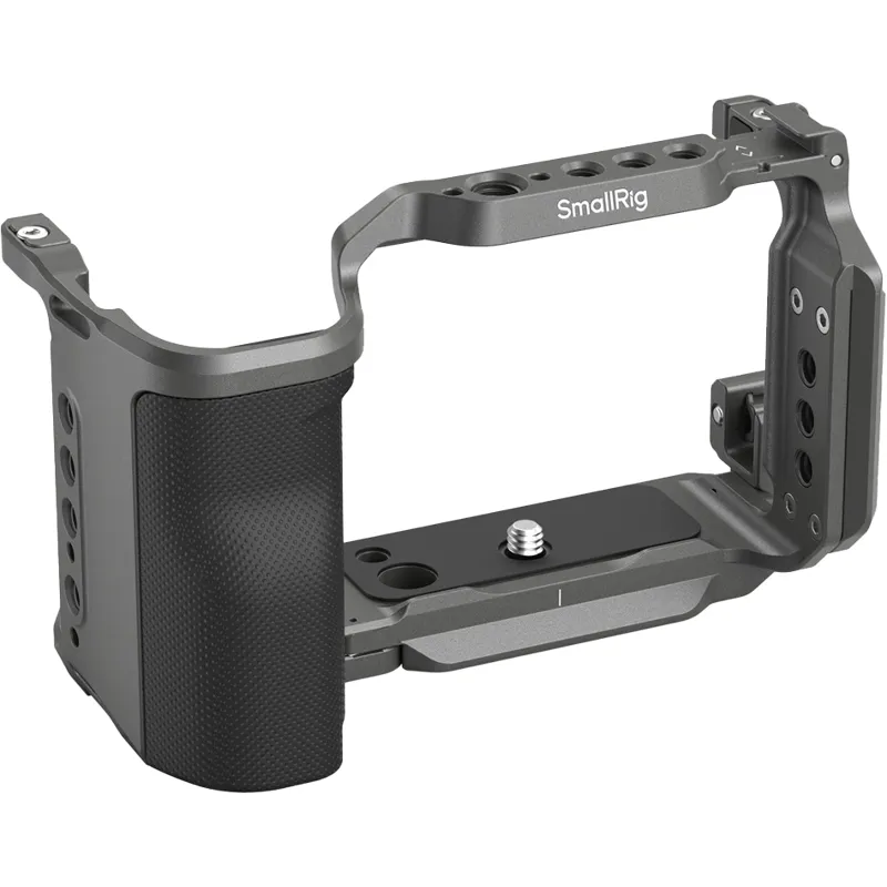 Клетка оснащена несколькими резьбовыми отверстиями 1/4"-20 и отверстиями ARRI для крепления таких аксессуаров, как верхняя рукоятка SmallRig 2165 и боковая рукоятка 4755, которые помогают при съемке с рук.