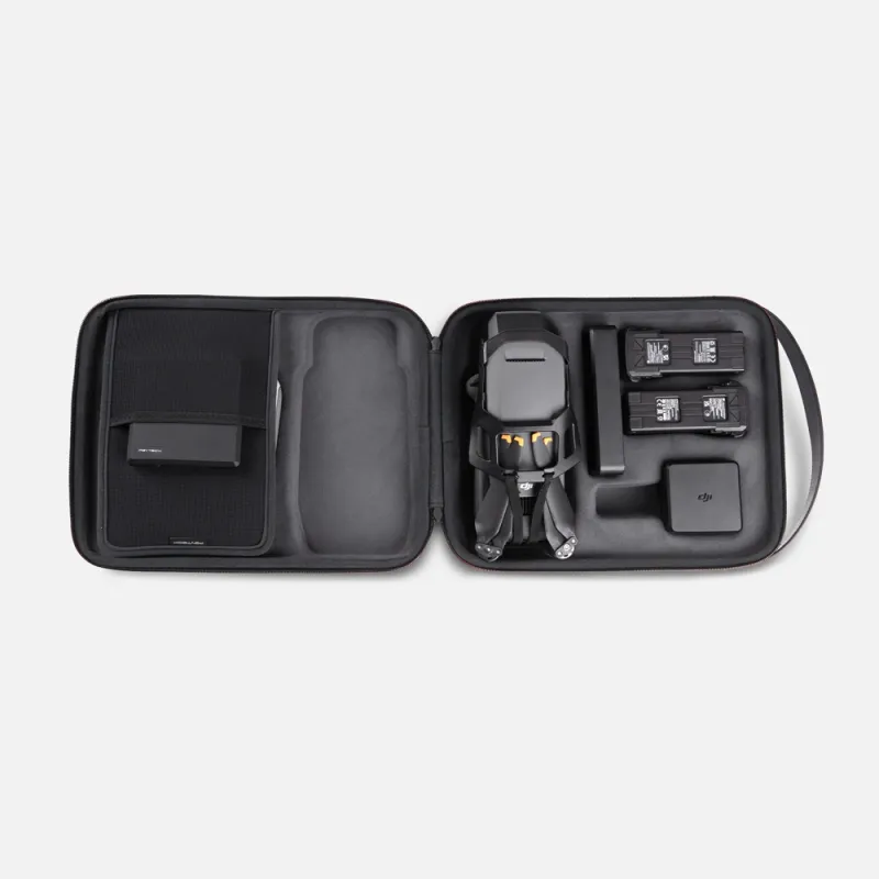 It holds your Mavic 3 series drone, remote control (DJI RC Pro/DJI RC/DJI RC N1), intelligent flight battery (including the one in the drone), charging adapter, filter and power cord. Designed with a handle and shoulder strap, making it highly portable. ,
