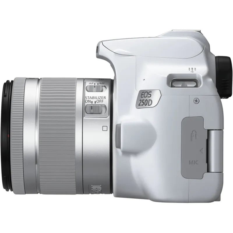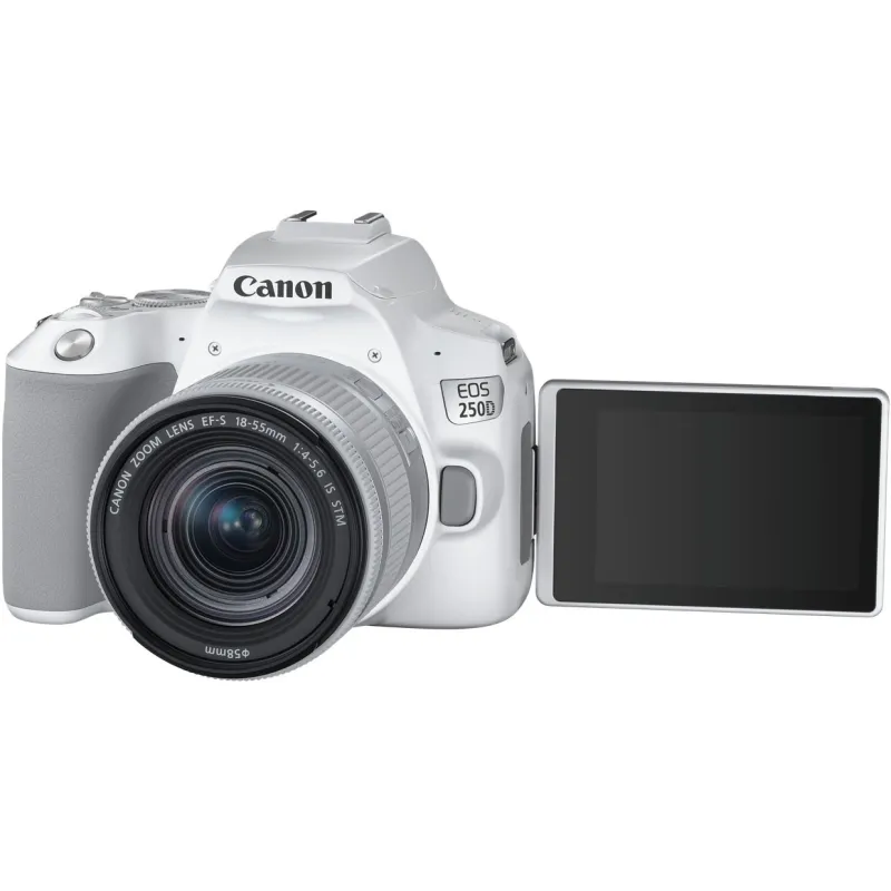 Defined by its notably sleek form factor, the Canon EOS 250D is a versatile DSLR offering an ideal mix of stills and video capabilities. Featuring a 24.1MP APS-C-format CMOS sensor and DIGIC 8 image processor, high-resolution stills and UHD 4K video recording are possible, along with a wide ISO 100-25600 sensitivity range to suit working in a variety of lighting conditions. In-camera 4K time-lapse movie creation is also possible for creatively depicting subjects over time. Benefitting the imaging attributes, the sensor's design also facilitates Dual Pixel CMOS AF, which uses phase-detection autofocus for quick, accurate, and smooth focusing performance when recording movies or shooting stills in live view. When shooting stills using the optical viewfinder, a 9-point phase-detection system is used for quick and accurate focusing in a variety of shooting scenarios.