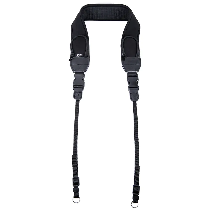 JJC Neck Strap NS-Q2 JJC Neck Strap NS-Q2 изготовлен из удобного и прочного неопрена. Мягкий неопрен снижает усталость и предотвращает боль в шее и плечах, позволяя вам носить камеру в течение длительного времени. NS-Q2 имеет противоскользящую плечевую накладку, которая предотвращает соскальзывание ремешка. Благодаря быстроразъемным зажимам вы можете легко прикрепить или снять ремень. Кроме того, NS-Q2 имеет два небольших кармана для хранения, например, карт памяти.